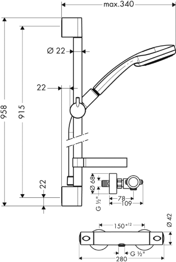 Добавить отзыв о «Душевой набор Hansgrohe Croma 100 Multi + Ecostat 1001 27085000»