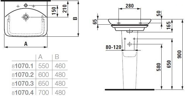 8.1070.1.000.104.1 Умывальник PALACE 550х460мм