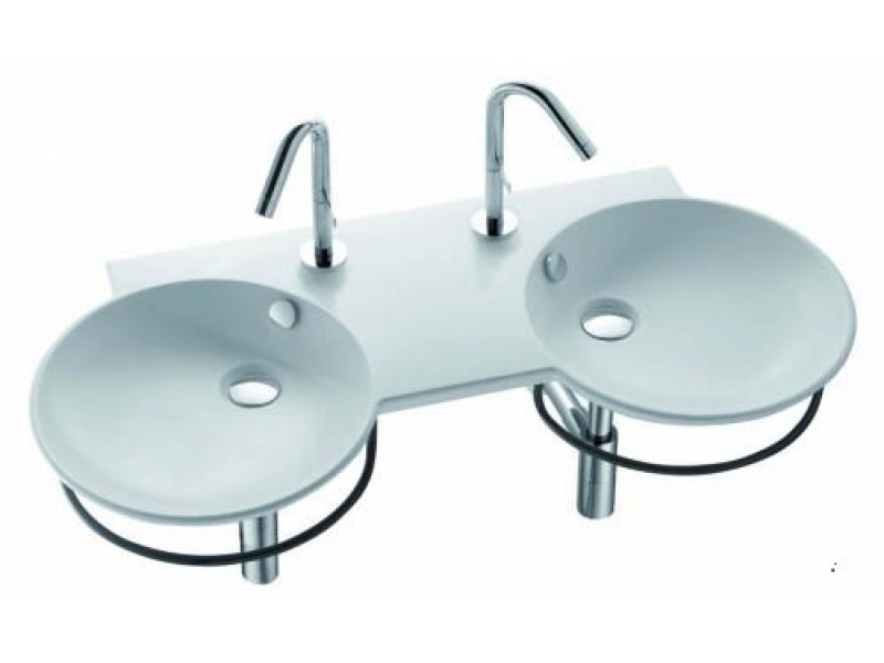 Умывальник с двойной раковиной Jacob Delafon Formilia E4502-00 Тип: подвесная, столешница, многосекционная Материал: фарфор Ширина, см: 100 Глубина, см: 46 Высота, см: 7 Вес, кг: 17 Перелив: есть Крышка перелива: есть Форма: круглая Цвет: белый Крепление: к стене Расположение смесителя: слева, справа Готовых отверстий для смесителя: 2 Диаметр слива, см: 3.2