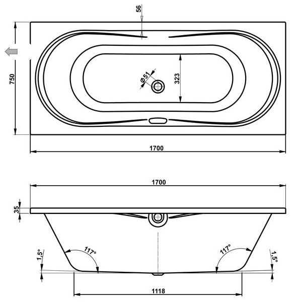 • Форма ванны:Прямоугольная