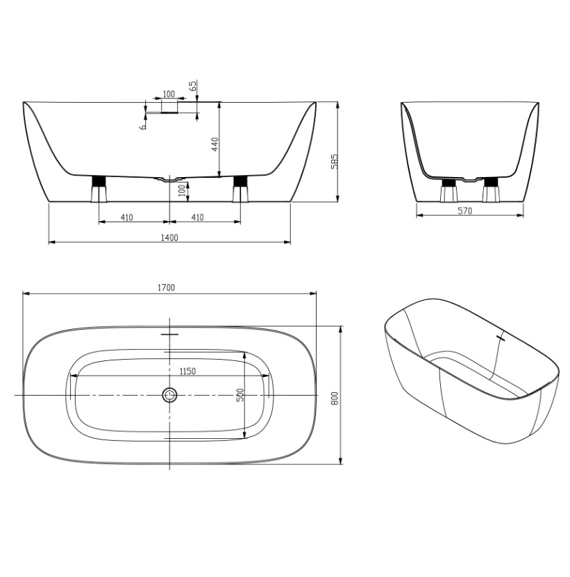 Добавить отзыв о «Ванна акриловая Volle отдельностоящая матовая с сифоном 170*80*585 12-22-808M»
