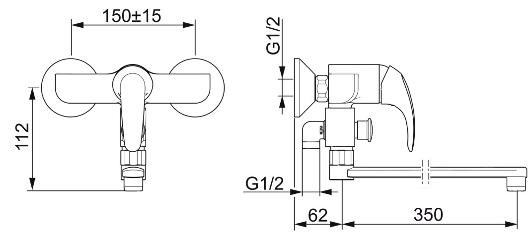 Смеситель для ванны и душа с поворотным изливом (350мм), аэратором и дивертером. В комплект входят эксцентрики и розетки. Со встроенными опциями ограничения температуры воды.