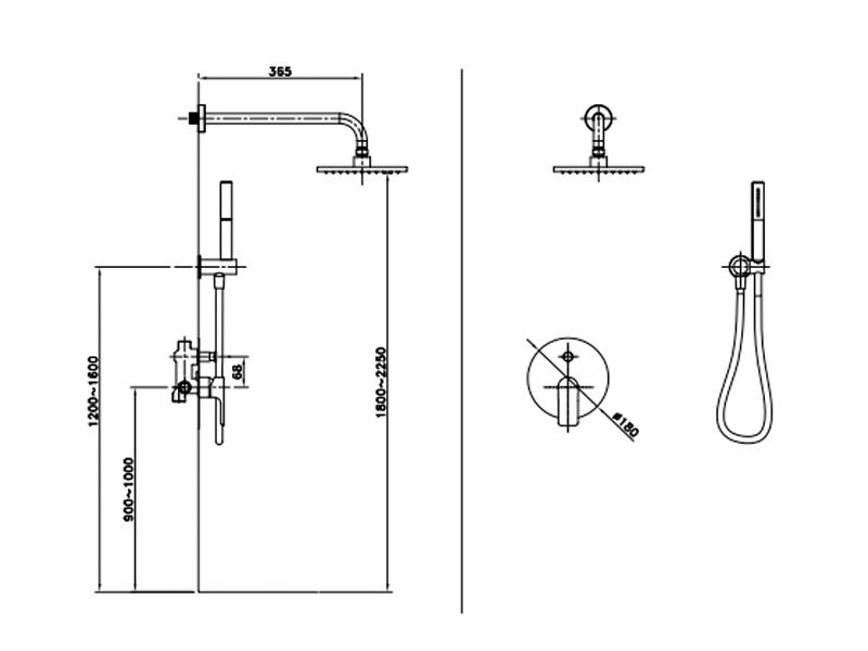 • размер верхнего душа 200 мм;