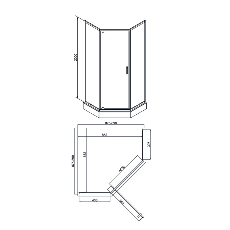 Душевая кабина Q-tap SCORPIO BLA10995-AC6, пятиуг., 90x90, стекло 6мм Clear, распаш., без поддона SCOBLA10995AC6