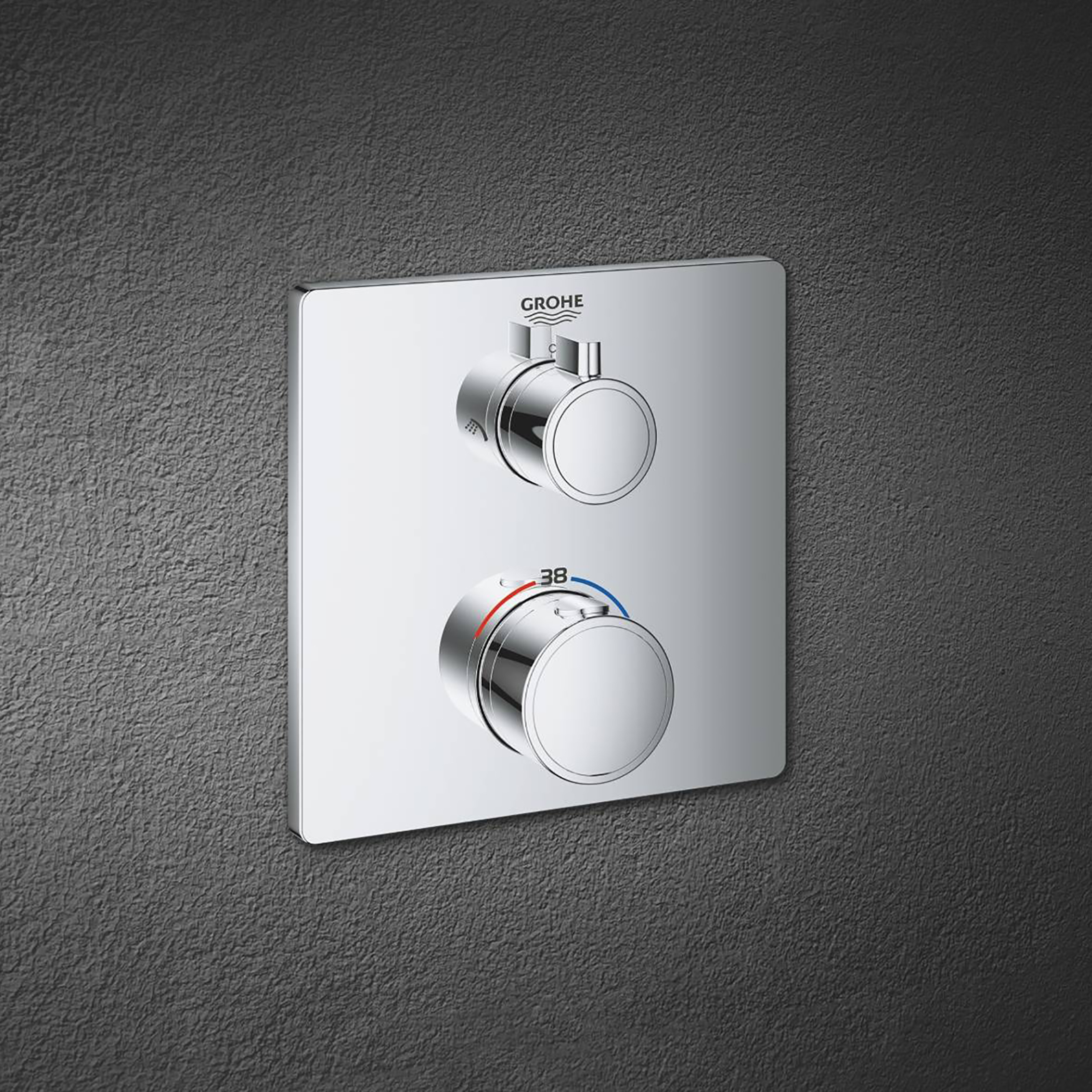 - Фирменные технологии:GROHE EasyLogic - четкая маркировка на корпусе. GROHE Inner WaterGuide - предотвращение нагрева поверхности лейки. GROHE SpeedClean - предотвращение образования известковых отложений. GROHE QuickFix - экономия до 40% затрат времени на монтаж. GROHE DreamSpray - оптимальное распределение воды по душевой форсунке. GROHE SafeStop - ограничение температуры воды до 38 °C. GROHE TurboStat - обеспечение и поддержание температуры воды. GROHE SmartControl - включение-выключение и регулировка напора.