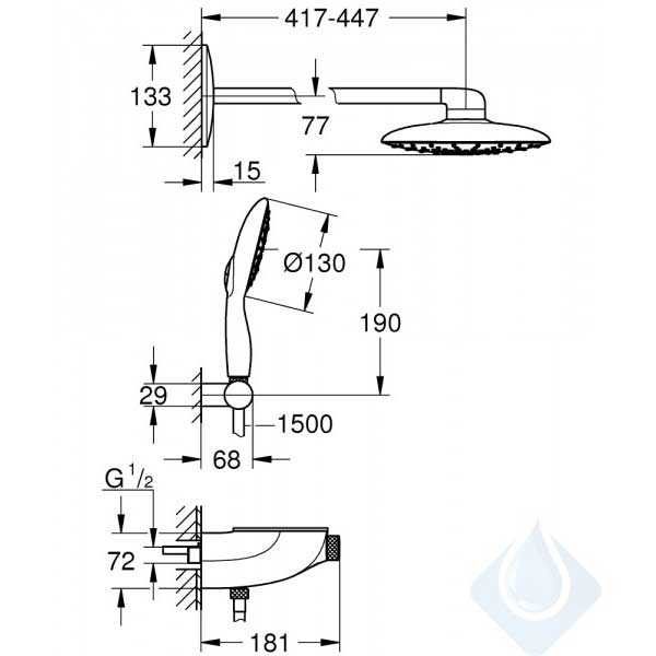 Режимы струи GROHE PureRain/GROHE Rain O2
