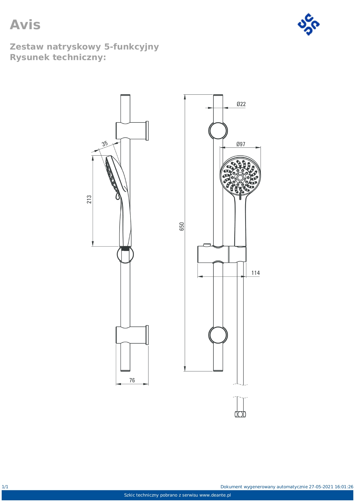 Душевой гарнитур Deante Avis NGV 051K