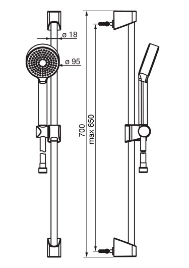 душевой штангой 650мм и шлангом 1750мм