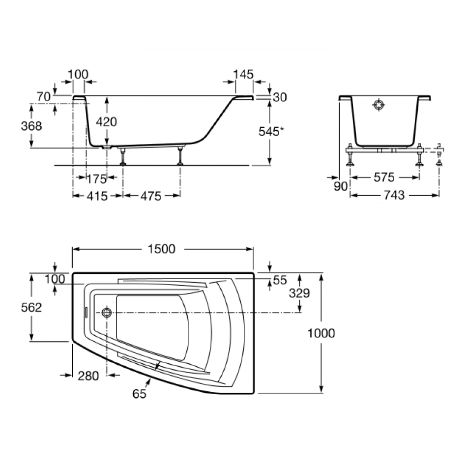 Добавить отзыв о «HALL ванна 150*100см угловая, правая версия, с интегр. подлокотниками, с подголовником и регулир. ножками»
