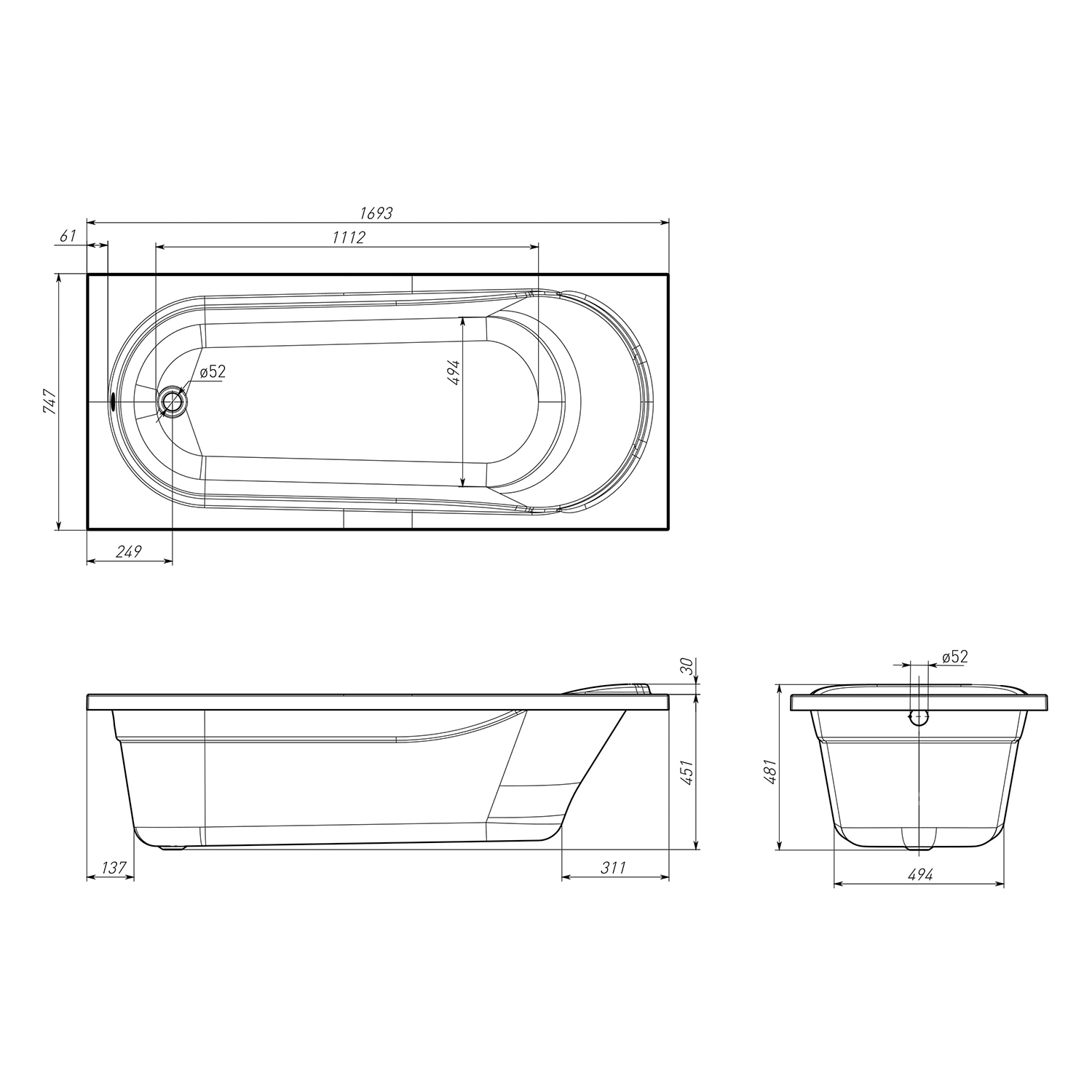 • Форма ванны:Прямоугольная