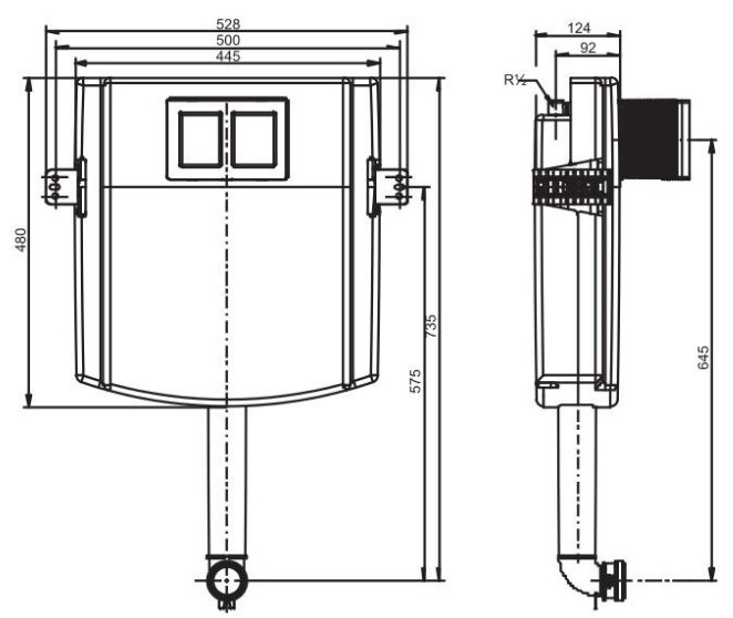 скрытый смывной бачок CC-150-S-FO-2V-2C