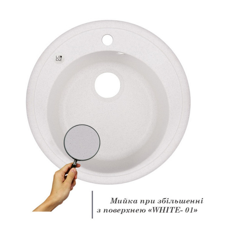 Кухонная мойка Lidz (WHI-01) D510/200 изготовлена из высококачественного гранита, имеет белую матовую поверхность, поэтому будет хорошо смотреться со смесителем того же цвета. Отменное качество и дизайн мойки позволят удовлетворить самые высокие требования и создать уют в вашем доме! Она выполнено с рабочей чашей с отверстием слив-перелив и поверхностью с нанесенным фирменным логотипом производителя и отверстием под смеситель. Мойка монтируется врезным способом в отверстие в столешнице.