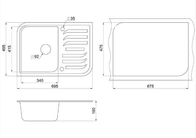 • Мойка:1 Чаша+1 Крыло