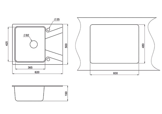 Габариты мойки (ШхГхВ): 62х50х19,5 см