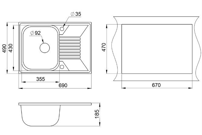 Габариты мойки (ШхГхВ): 69х49х18,5 см