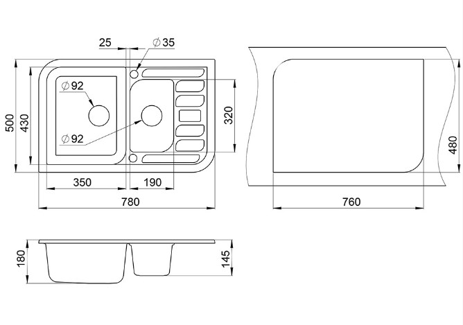 Габариты мойки (ШхГхВ): 78х50х18 см