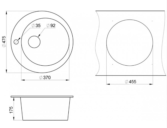 Габариты мойки (ШхГхВ): D 48х17,5см