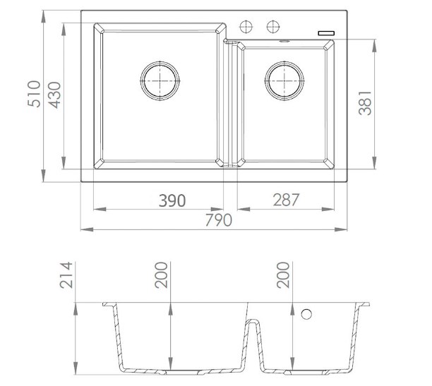 Габариты мойки (ШхГхВ): 79х51х21,4 см