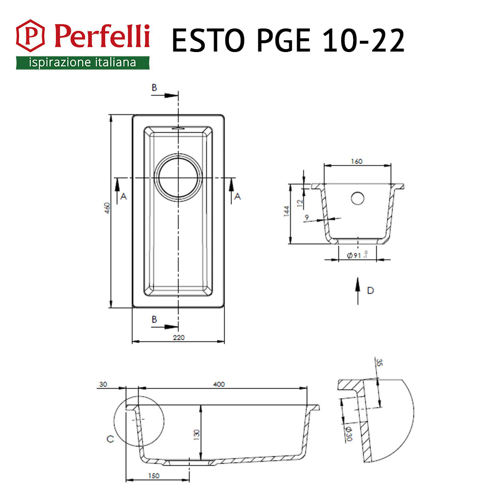 Кухонная мойка Perfelli ESTO PGE 10-22 LIGHT BEIGE 22х46х14,4 см