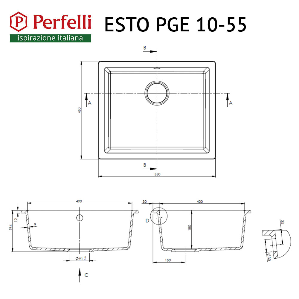 Кухонная мойка Perfelli ESTO PGE 10-55 SAND 55х46х19,4 см