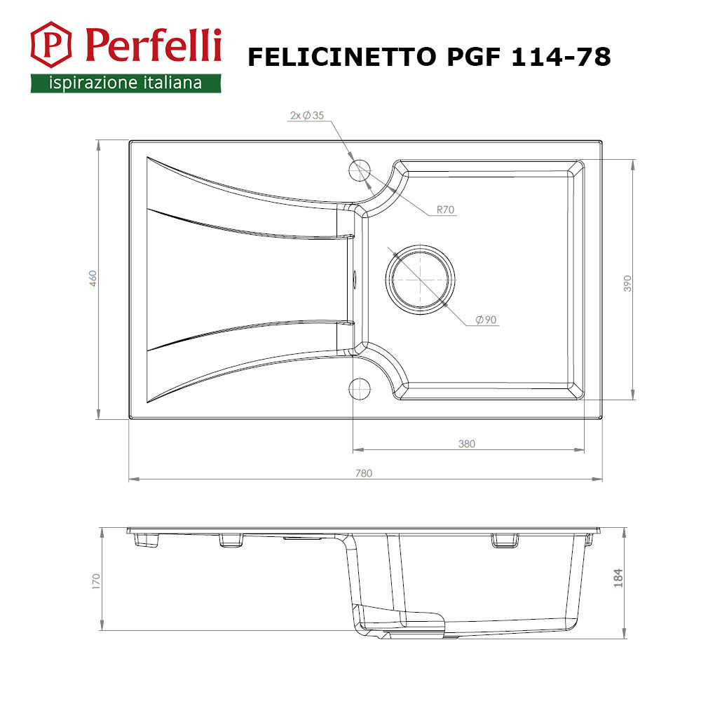 Кухонная мойка Perfelli FELICINETTO PGF 114-78 BLACK 78х46х18,4 см