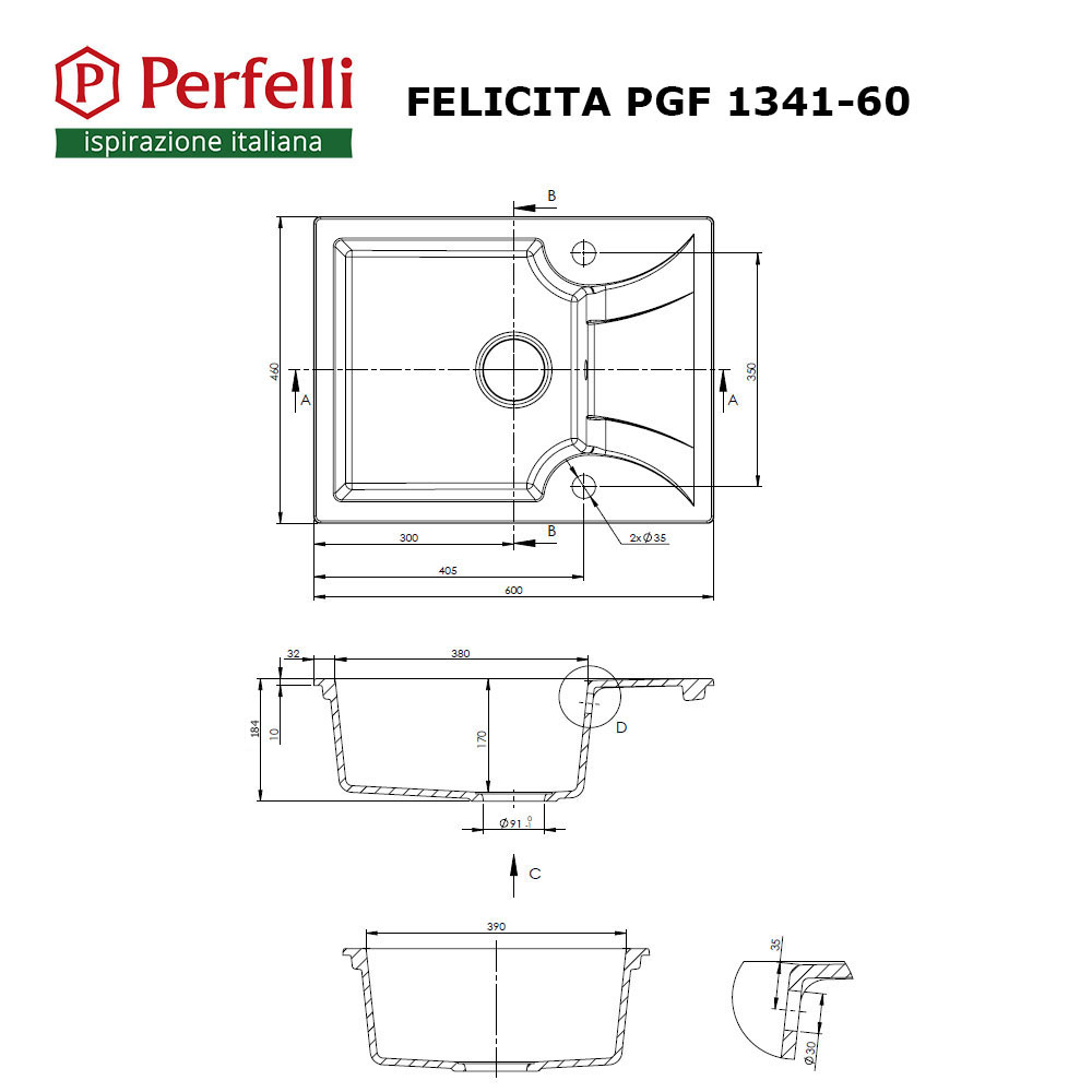 Кухонная мойка Perfelli FELICITA PGF 1341-60 GREY METALLIC 60х46х18,4 см
