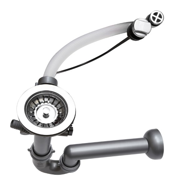 Комплектация итальянского производства (FISCITALIANA): сифон, выпуск, перелив, сливная арматура, корзинчатый вентиль 3 "½" (металлическая втулка, металлическая гайка), фиксирующие зажимы