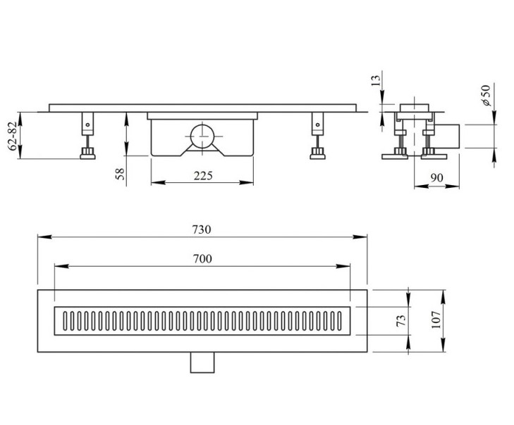 • Душевой лоток:70 см