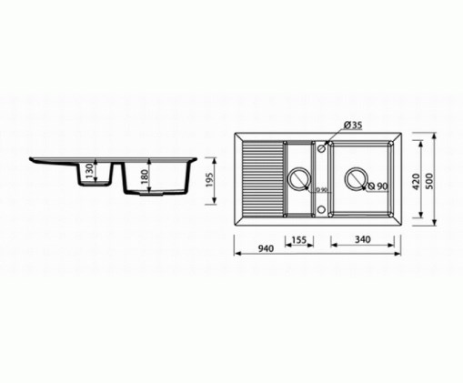 Размеры: 940х500х195 мм
