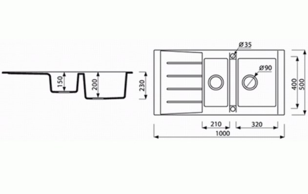 Размеры чаши: 210x400x150 мм, 320х400х220 мм