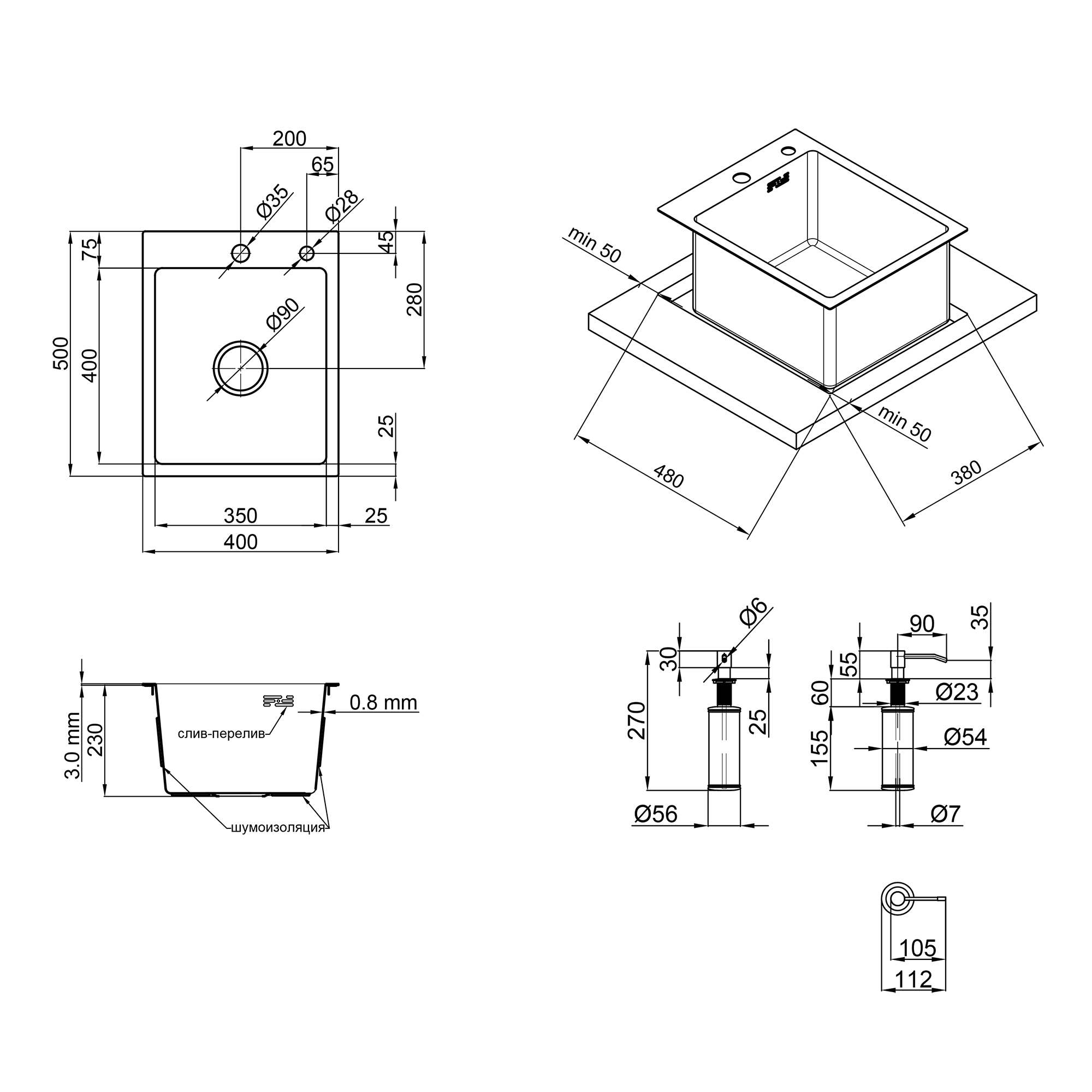 - Габариты мойки (ВхШхД), мм:230х400х500