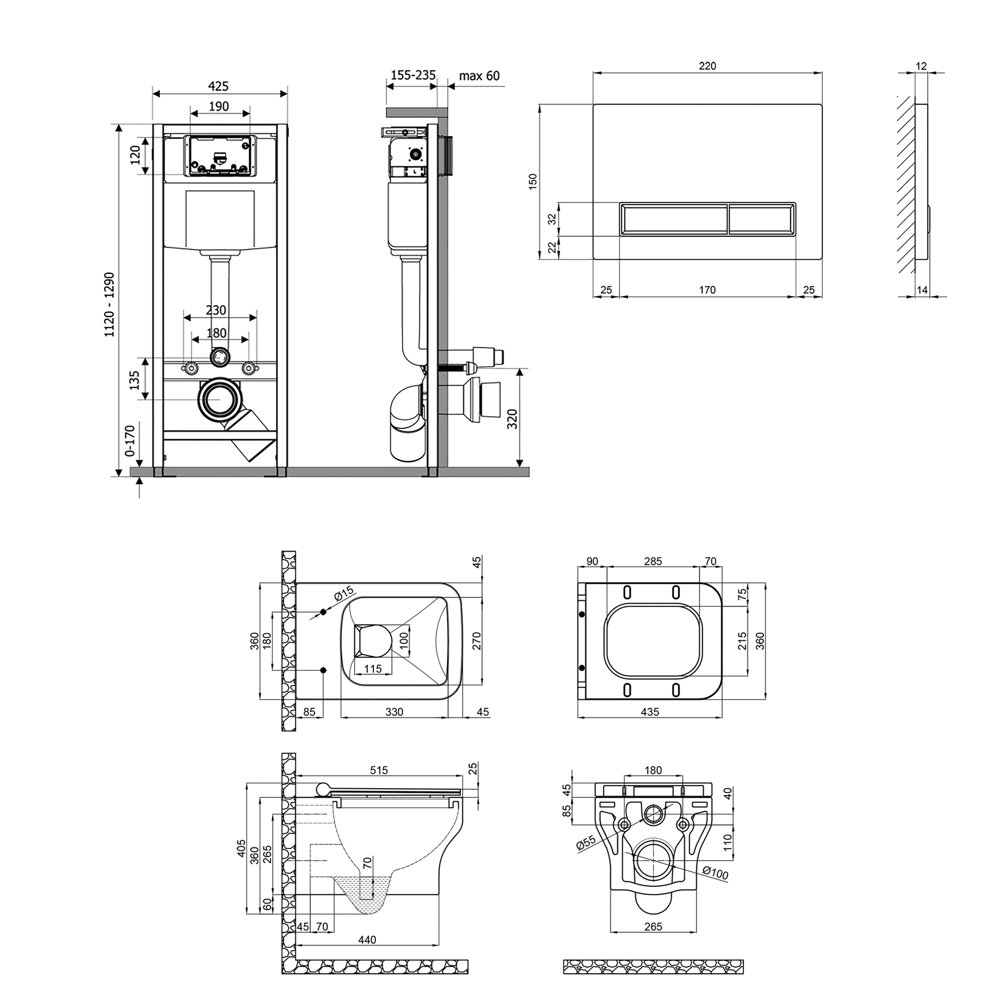 • Тип изделия:Набор инсталляция + унитаз с сиденьем
