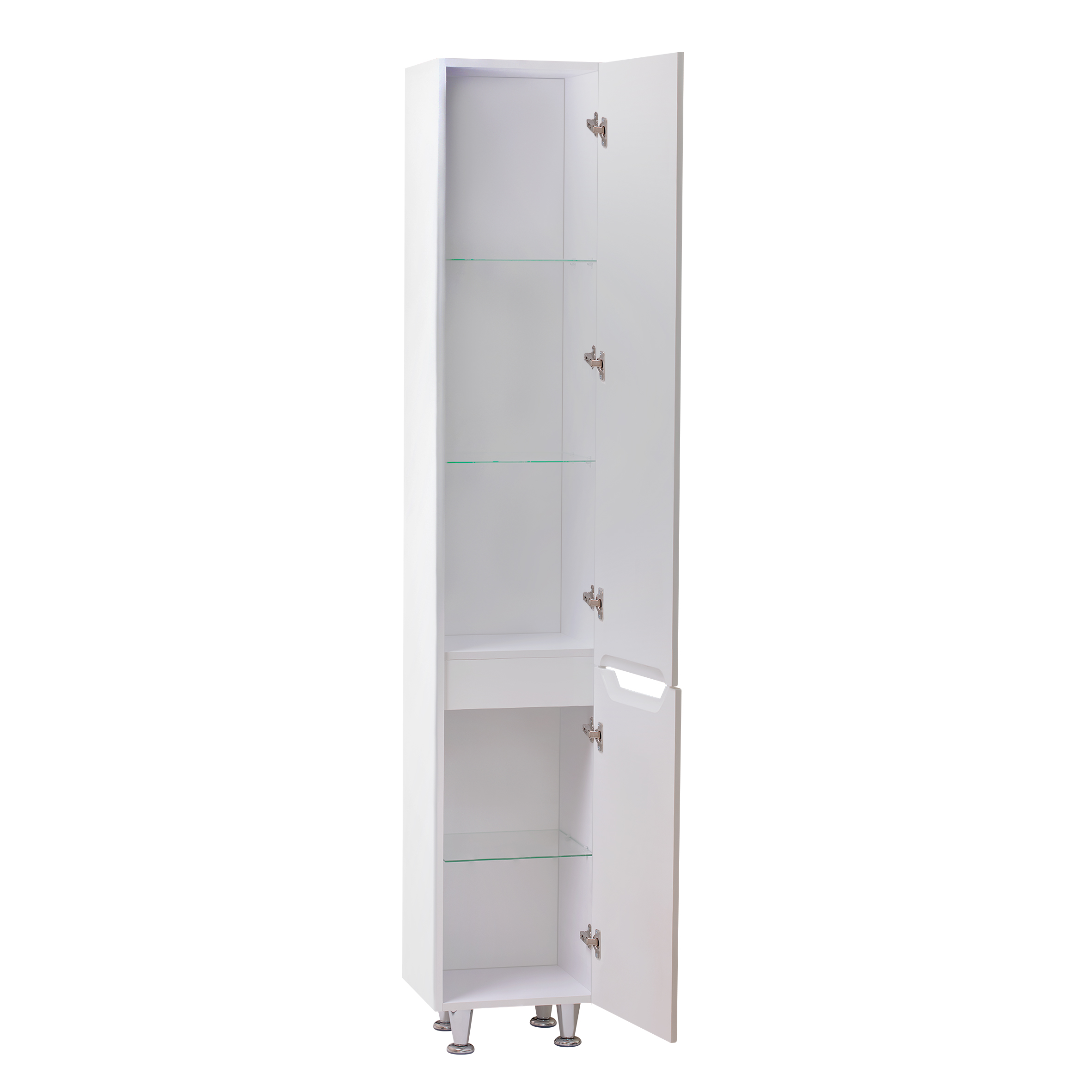 Пенал напольный Qtap Scorpio QT1475PN1901RW изготовлен из ЛДСП белого цвета, фасадная часть из МДФ с глянцевым покрытием. Оснащен двумя отделениями с одностворчатыми дверцами, в которых расположены полочки из стекла. В комплекте четыре хромированные ножки из пластика. Изделие выполнено в элегантном лаконичном стиле, который впишется в дизайн любой ванной комнаты.