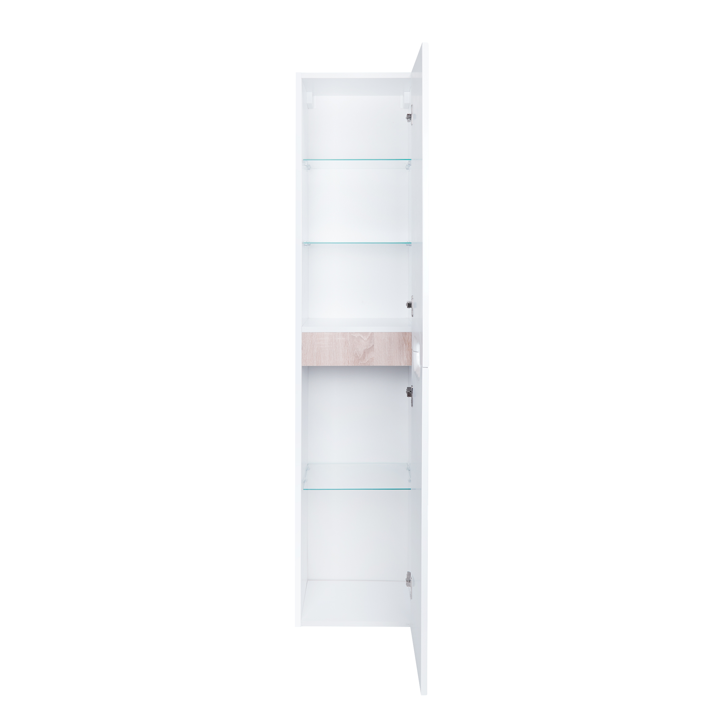 Подвесной пенал Qtap Virgo 350х1600х316 White/Whitish oak QT1876PP1651RWWO белого цвета изготовлен из ЛДСП, а фасадная часть из МДФ. Изделие оснащено двумя отделениями, в которых расположены полки из стекла. Двери изделия оснащены механизмом доводчика. Оригинальный внешний вид позволяет интегрировать изделие в дизайн любой современной ванной комнаты. Подвесная конструкция пенала облегчит уборку помещения.