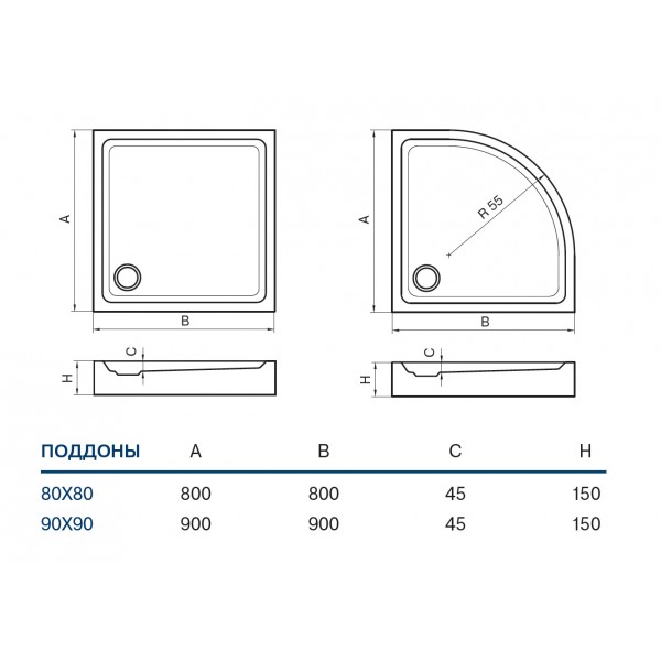 Полукруглый самонесущий душевой поддон на полиуретановой основе Koller Pool Round 80x80 подходит для всех полукруглых душевых кабин.