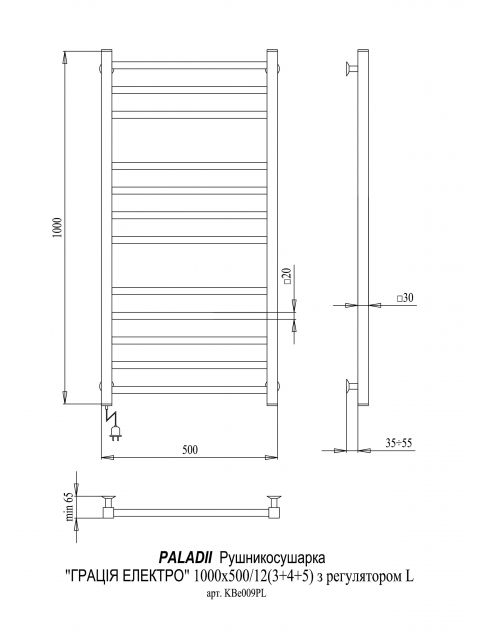Добавить отзыв о «Полотенцесушитель электрический Paladii Грация Электро 1000×500 КВе009РL»