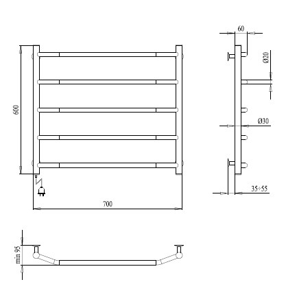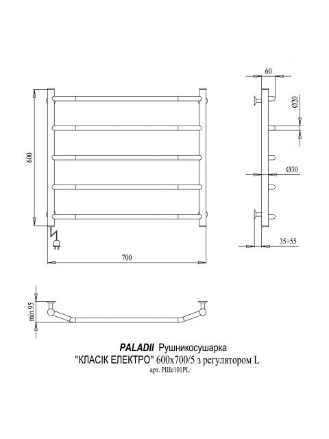 Полотенцесушитель электрический PALADII Классик-электро 600×700 РШе101РL
