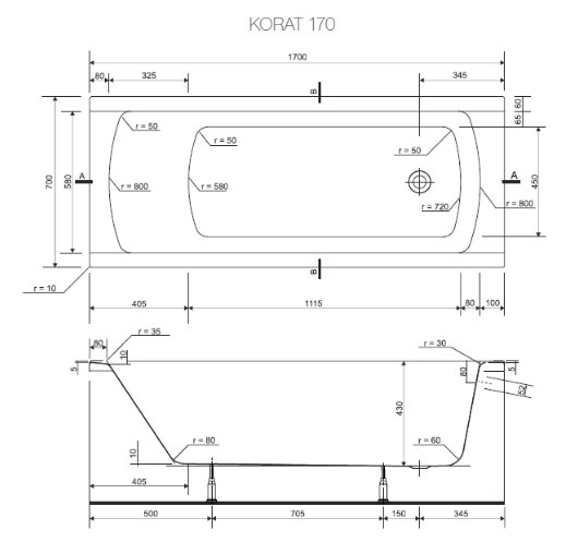 Прямоугольная ванна Cersanit Korat 170x70 27036 с ножками