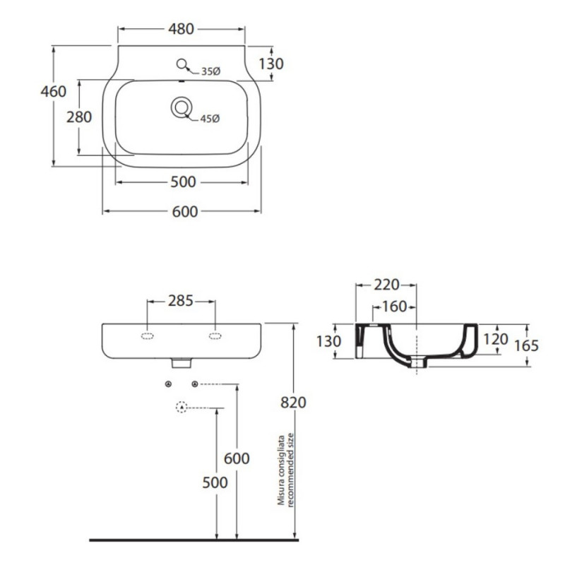 • Умывальник:Подвесной