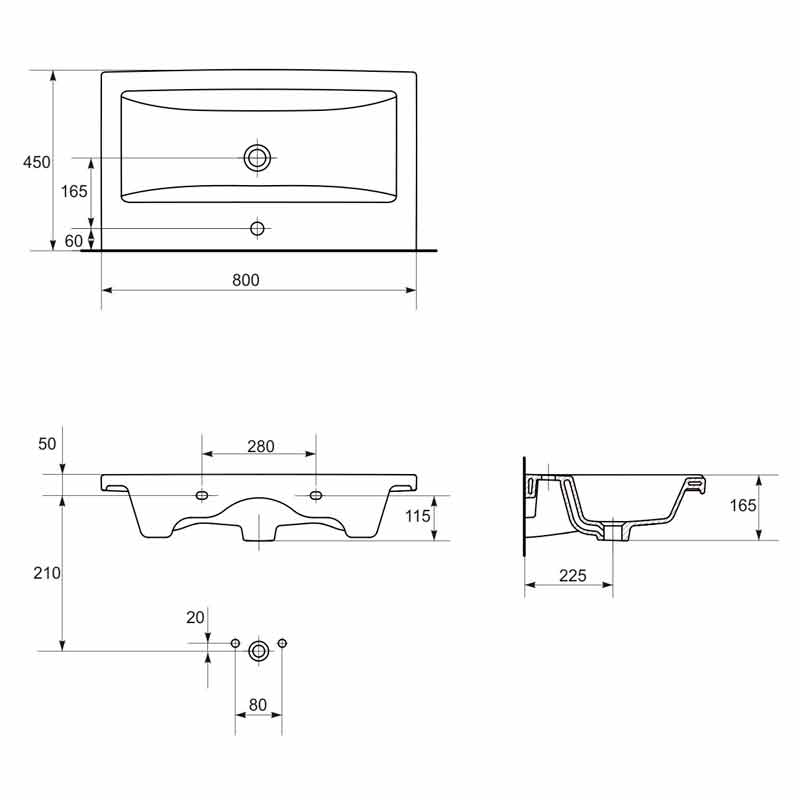Раковина КОМО 80см, з/о, меблева