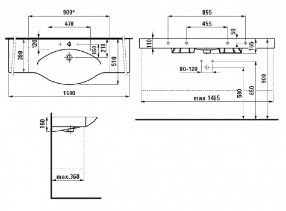 Добавить отзыв о «Раковина Laufen Palace 150 см, с держателем полотенца H8127060001041»