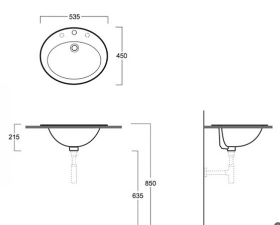 • Умывальник:Врезной