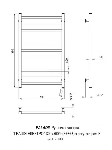 Рушникосушарка PALADII Грація Електро 800х500/9R КВе102ПR