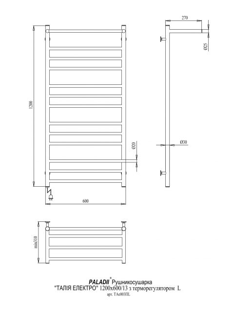 Рушникосушарка PALADII Талія з полицею Електро 1200*600/13L ТАе003ПL