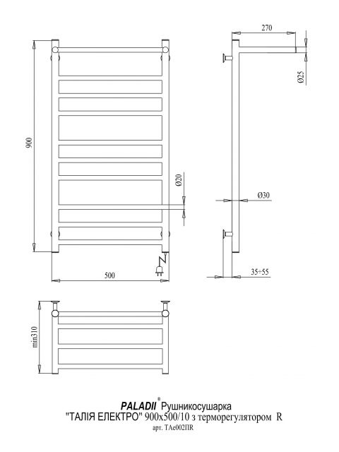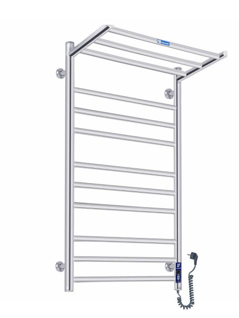 Сучасний дизайн моделі "Талія з полицею", акуратні лінії рушникосушарки, зробленої з круглого профілю, підходять до ванн в стилі класика, модерн, стримана класика. З метою розширення функціональності моделі додана зручна полиця для просушки додаткових речей або взуття. Підходить для тих, хто любить натуральність, прості елементи в дизайні. Електричний тип моделі рушникосушки дозволяє бути йому незалежним від впливів агресивною середовища (вода, електропробої) і відрізняється економічною вигодою для споживачів електроенергії. Це відмінне рішення регулювання температурного режиму в приміщенні при відсутності водяного, централізованого опалення. Сухий внутрішній елемент, що нагріває (кабель) виконаний з безпечного ізоляційного матеріалу, стійкого до загорянь, пов'язаних з перебоями в подачі електроенергії.Можливе нанесення кольорового покриття методом порошкового фарбування або хімічної металізації. Електричні рушникосушарки виготовляються з різними типами підключення: із звичайною вилкою з кнопкою, з механічним регулятором температури або з електронним регулятором, за допомогою якого регулюються режим роботи та температура.