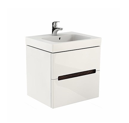 Шкафчик под умывальник 60 см, Modo 89425 белый глянец Серия: Modo Бренд: Kolo Глубина 47.9 см Высота 55 см Ширина 59 см Вес 31 кг Цвет: белый глянец. 2 выдвижных ящика с механизмом soft-close. Возможность монтажа с двумя или четырьмя ножками. В комплект входят: 3 варианта цвета ручки - венге, дуб арава, хром, монтажный набор, инструкция по монтажу.