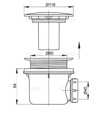 Сифон для душевого поддона, металл LUX Alcaplast A49K составной частью упаковки является ключ для правильной установки сифона сифон может быть изготовлен со специальной подводкой для отвода конденсата легко чистится сверху отвод может быть подключен при помощи колена A52