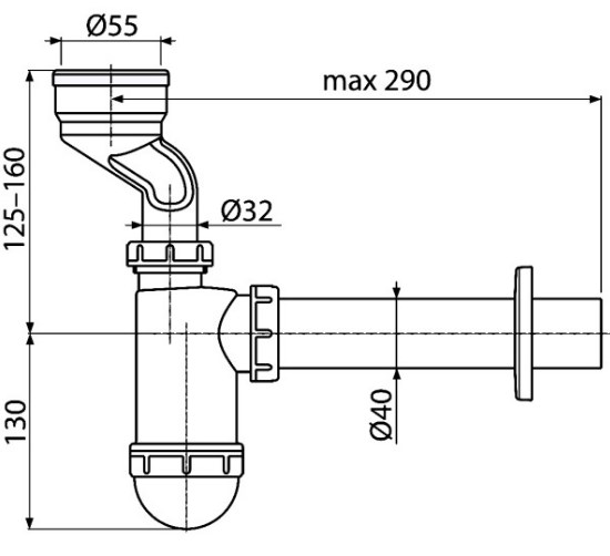 Добавить отзыв о «Сифон для писсуара с манжетой Alcaplast A45A»