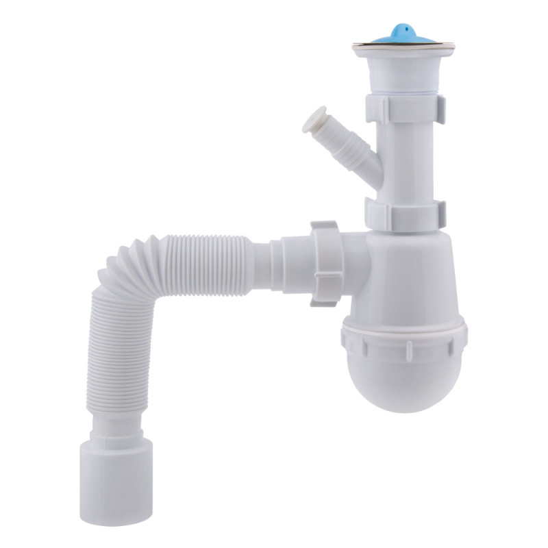 Добавить отзыв о «Сифон Krono Plast М1550 для кухни с отводом для стиральной машины, выпуск 70 мм выход 40/50 мм»