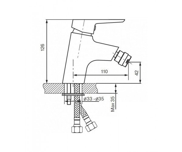 общая высота 126 мм, излив, длина 110 мм, высота 42 мм